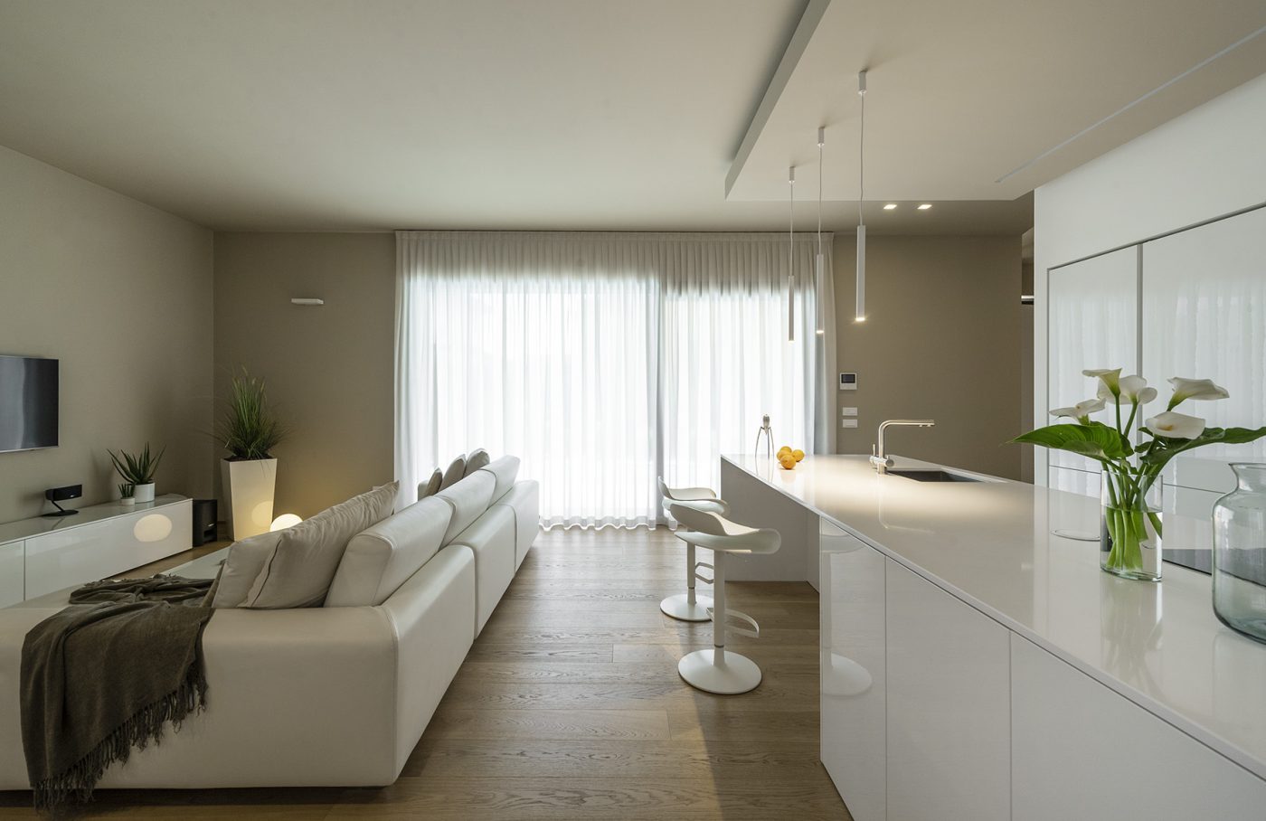 Il sistema impiantistico è dotato di pompa di calore inverter ad alta efficienza alimentata da energia elettrica per il riscaldamento, il raffrescamento e la produzione di acqua calda sanitaria e di un sistema di rinnovo e purificazione dell’aria, controllo dell’umidità e recupero termodinamico dell’energia , dotato di filtrazione in grado di abbattere agenti patogeni e particelle inquinanti di diametro tra 0,01 e 20 micron.La distribuzione del caldo e del freddo avviene attraverso un sistema radiante a pavimento.