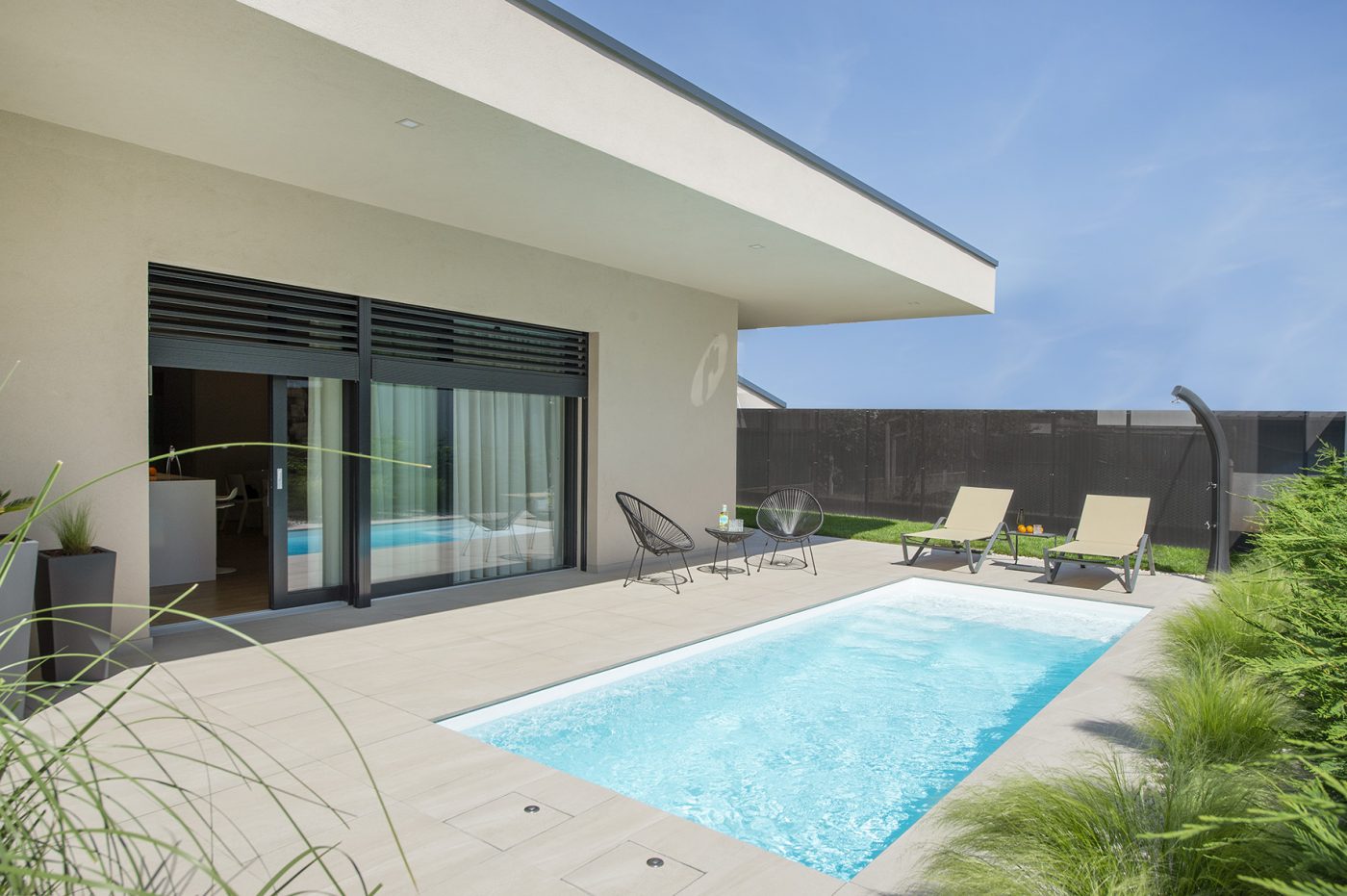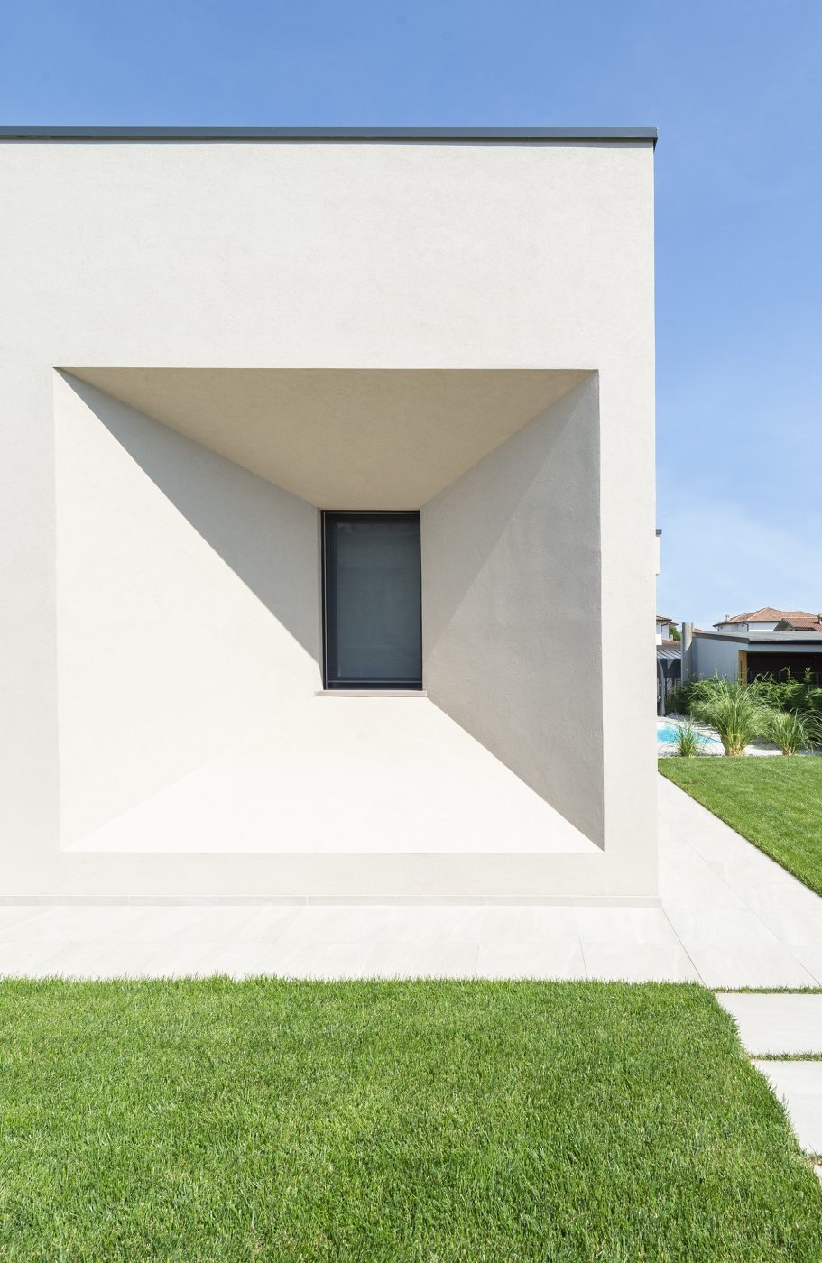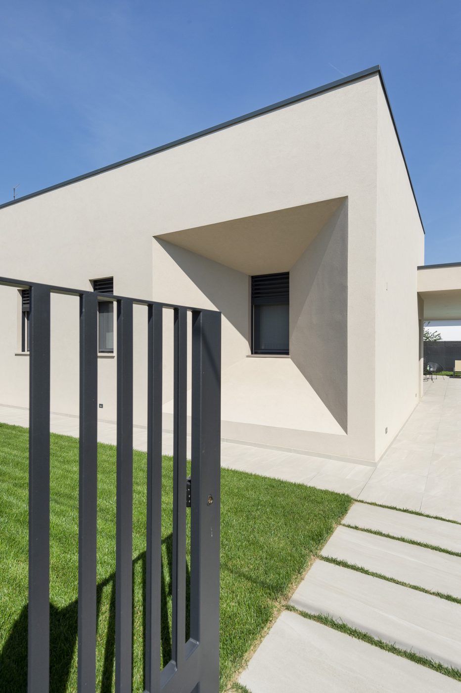 Esternamente le facciate orientate a Sud ed Est dispongono di una zona coperta con funziona di protezione solare .